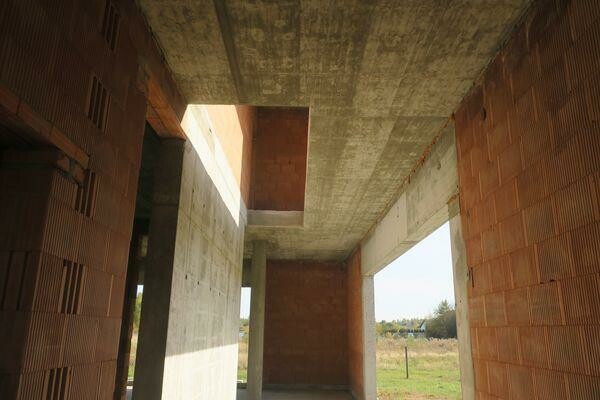 Budynek dwukondygnacyjny, z dachem płaskim, który w części pełni również funkcję tarasu. Obecnie wybudowana jest bryła budynku z pustaka ceramicznego Porotherm25 P+W, strop monolityczny żelbetowy. Są już przyłącze energetyczne, gazowe i woda.