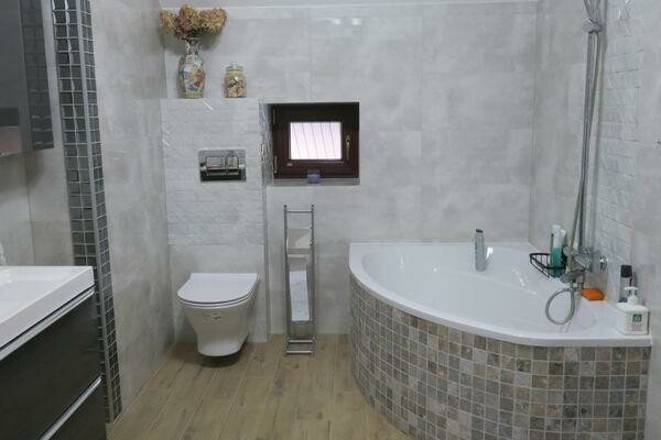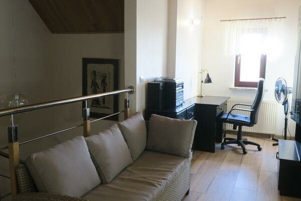 Na piętrze 2 pokoje, łazienka, garderoba.