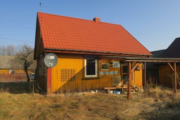 Domek drewniany 56 m2) , budynek gospodarczy (ok 59m2) , spichlerz, ziemianka. Dojazd drogą asfaltową, nieruchomość ogrodzona, studnia, siła.